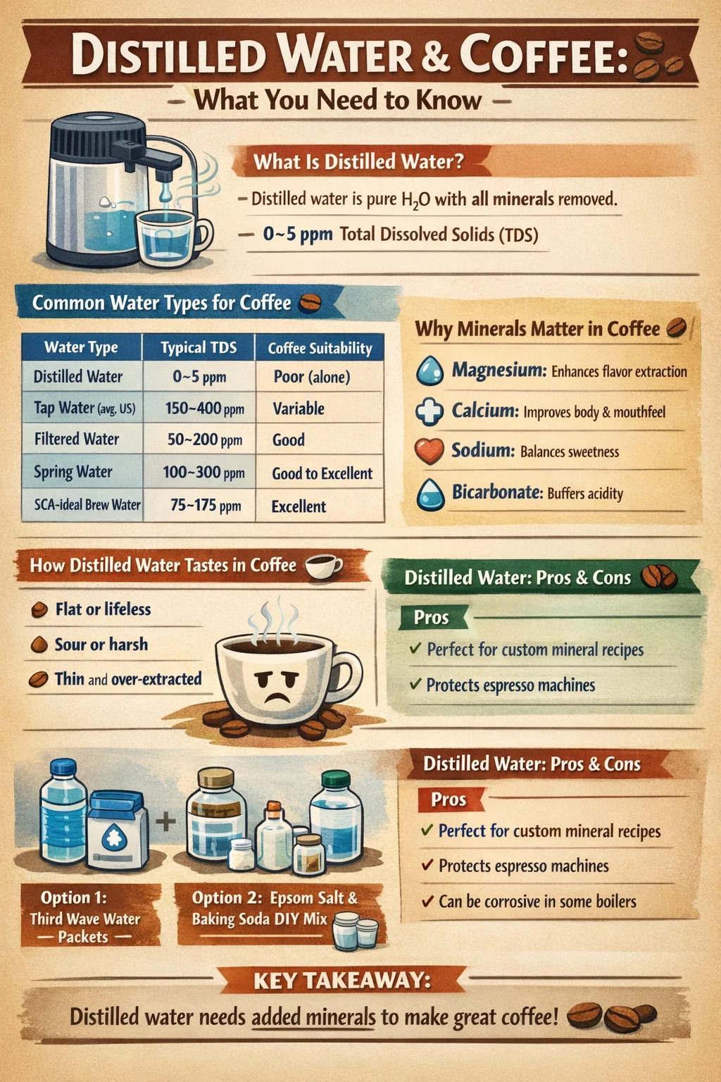 Den här artikeln bryter ner exakt vad som händer när du använder destillerat vatten till kaffe, vad vetenskapen säger, hur vattendestillerare spelar in och vilka alternativ som ger dig bättre resultat utan gissningar.
